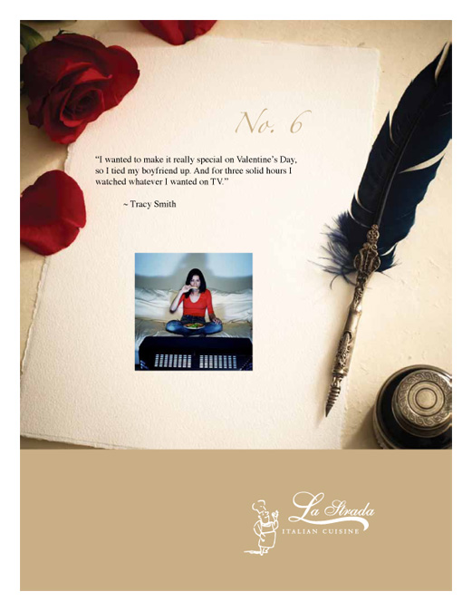 “I wanted to make it really special on Valentine’s Day, so I tied my boyfriend up. And for three solid hours I watched whatever I wanted on TV.”