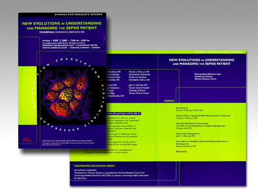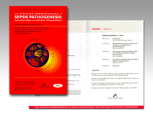 direct mailprinted ads, letters or other communications bulk-mailed to intended audienceProject Name: The Evolving Understanding of Sepsis Pathogenesis Registration for Congress Meeting Client: Eli Lilly Project Description: 4-page direct mail piece for congress meeting registration mailer. Project Role: Design solution for the registration mailer; illustration for the cover and pre-press file for print submission Software used: Adobe Illustrator & Photoshop