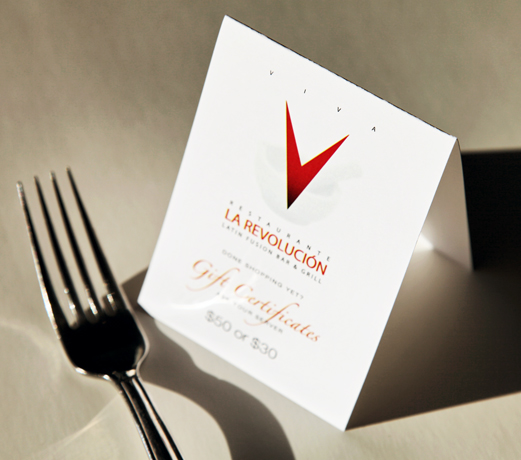 Project Role: Design table tents to promote gift certificates as unique holiday presents.